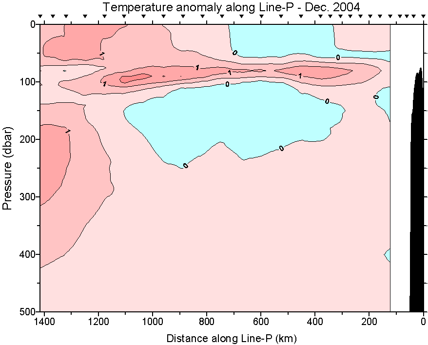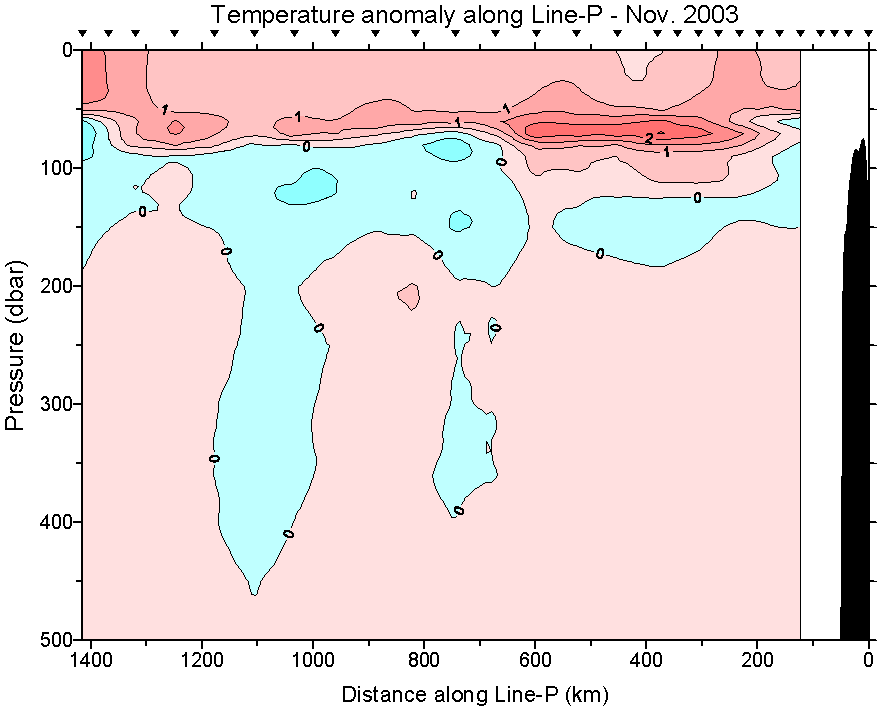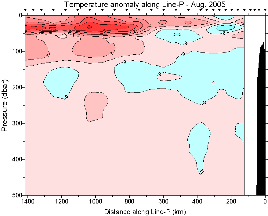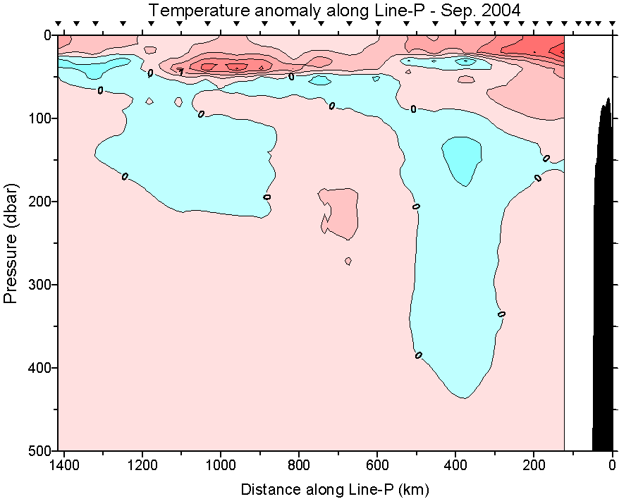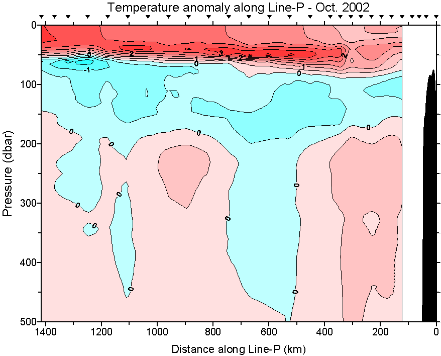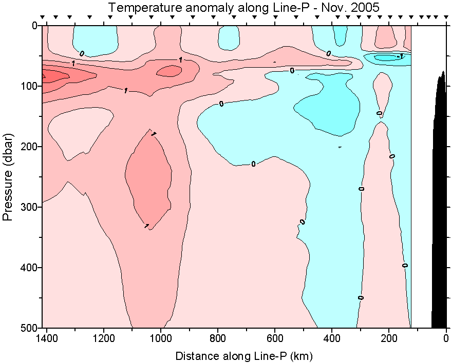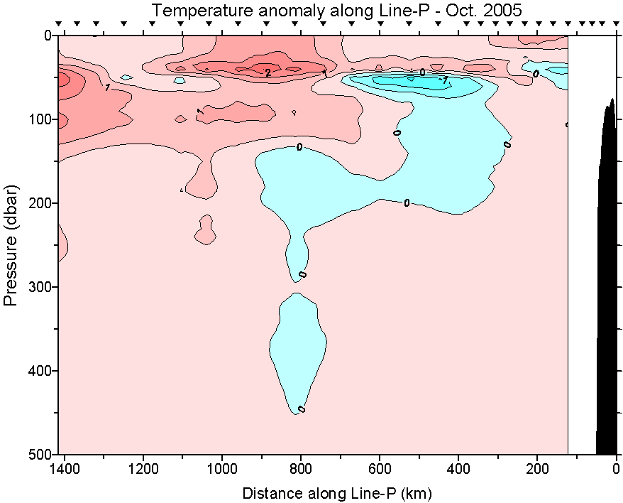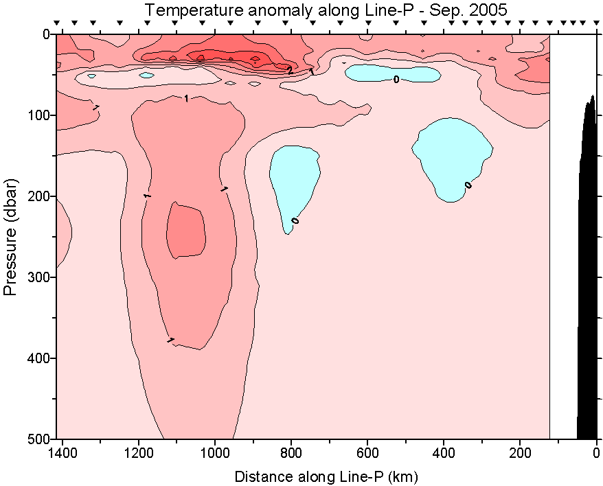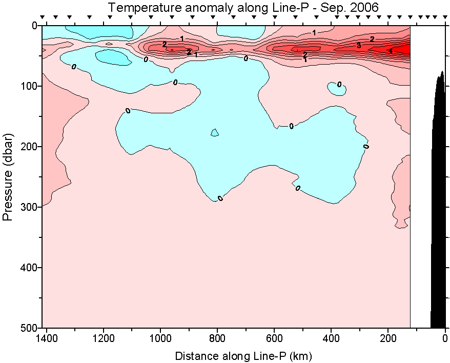 La ligne océanique P est une série d'observations du golfe de l'Alaska depuis 1956 jusqu'à aujourd'hui. Ces données sont utilisées ici en raison de la disponibilité des observations climatologiques fiables retrouvées le long de la ligne océanique P.