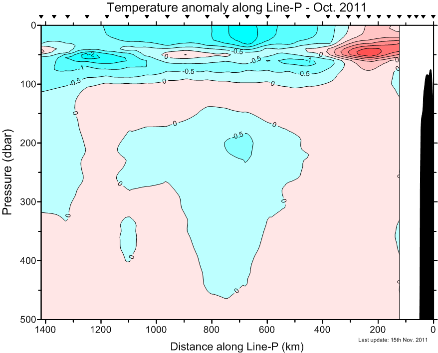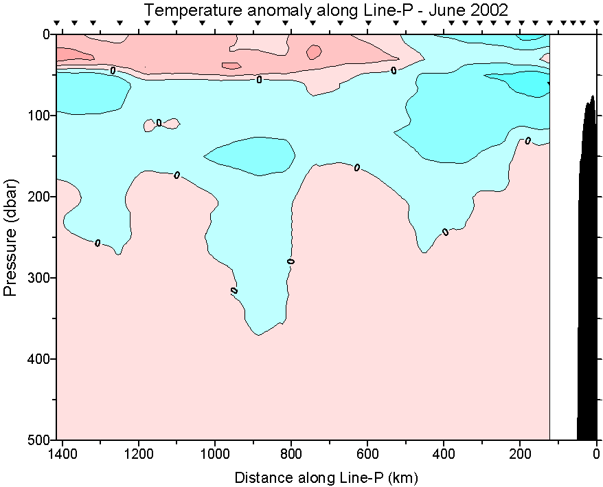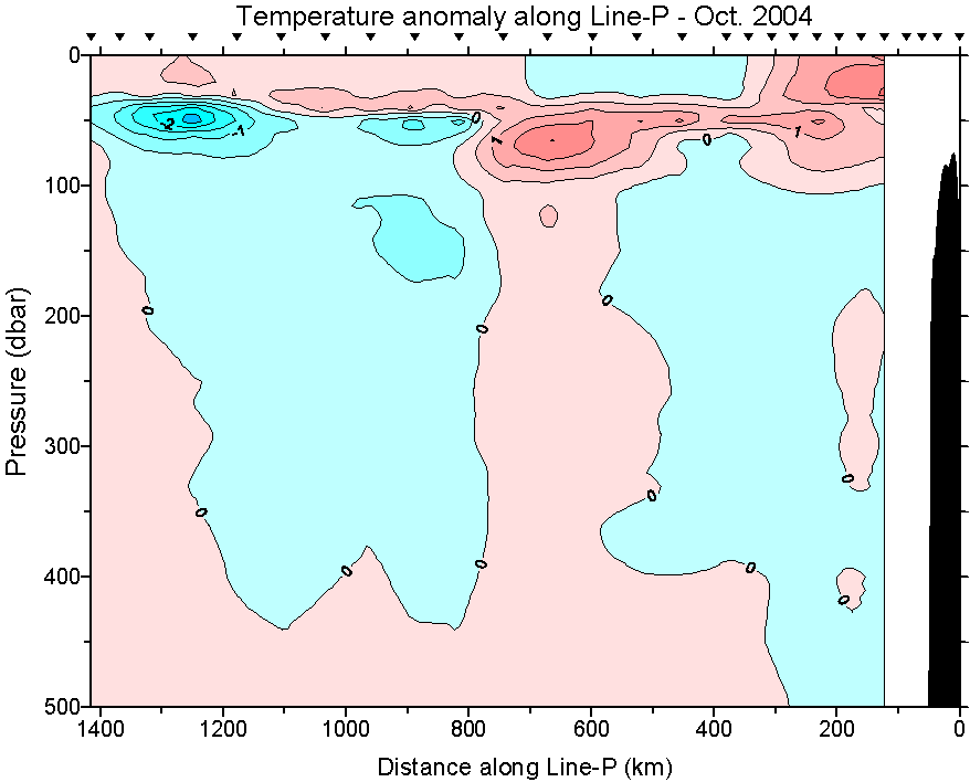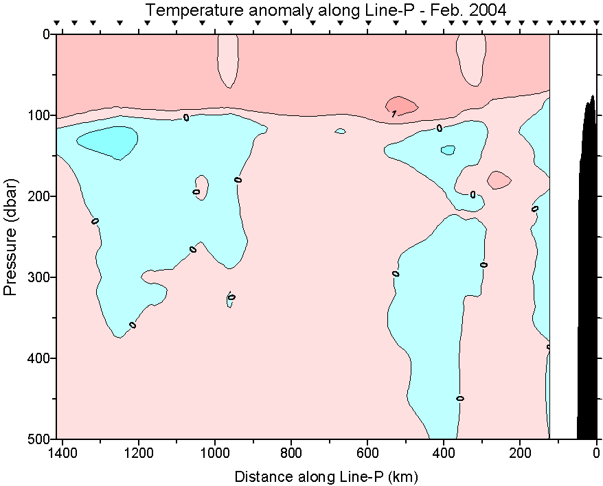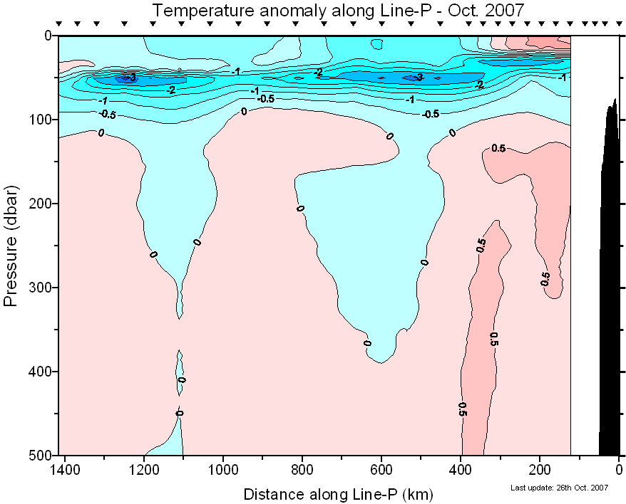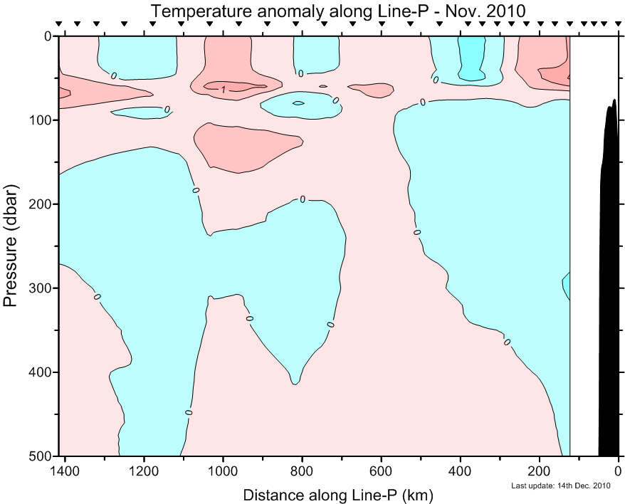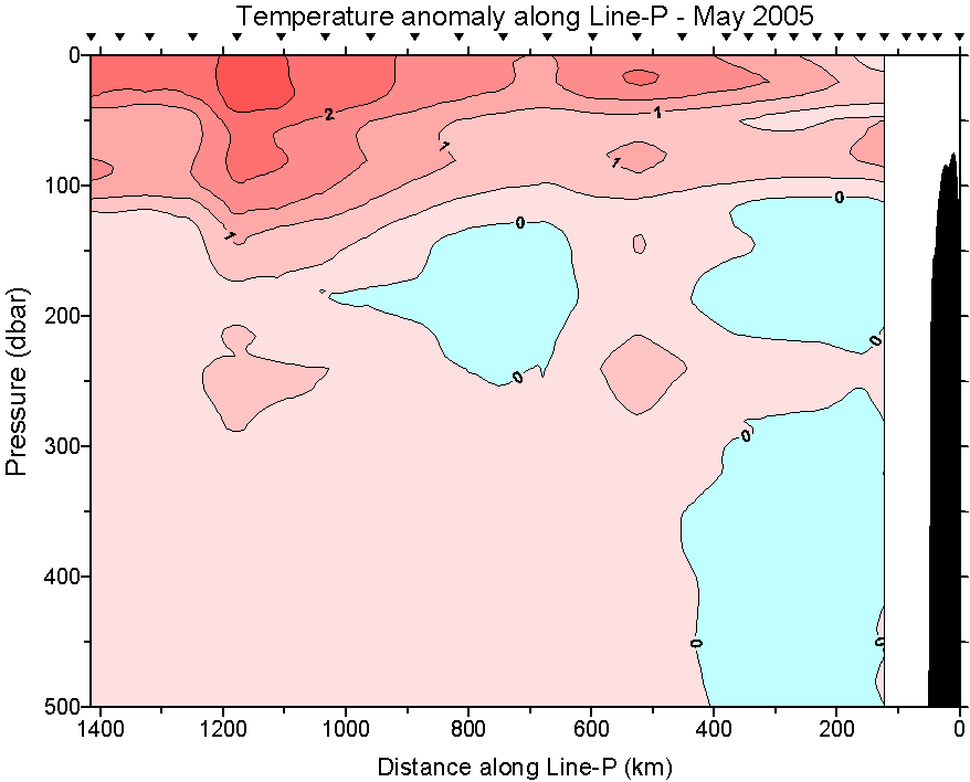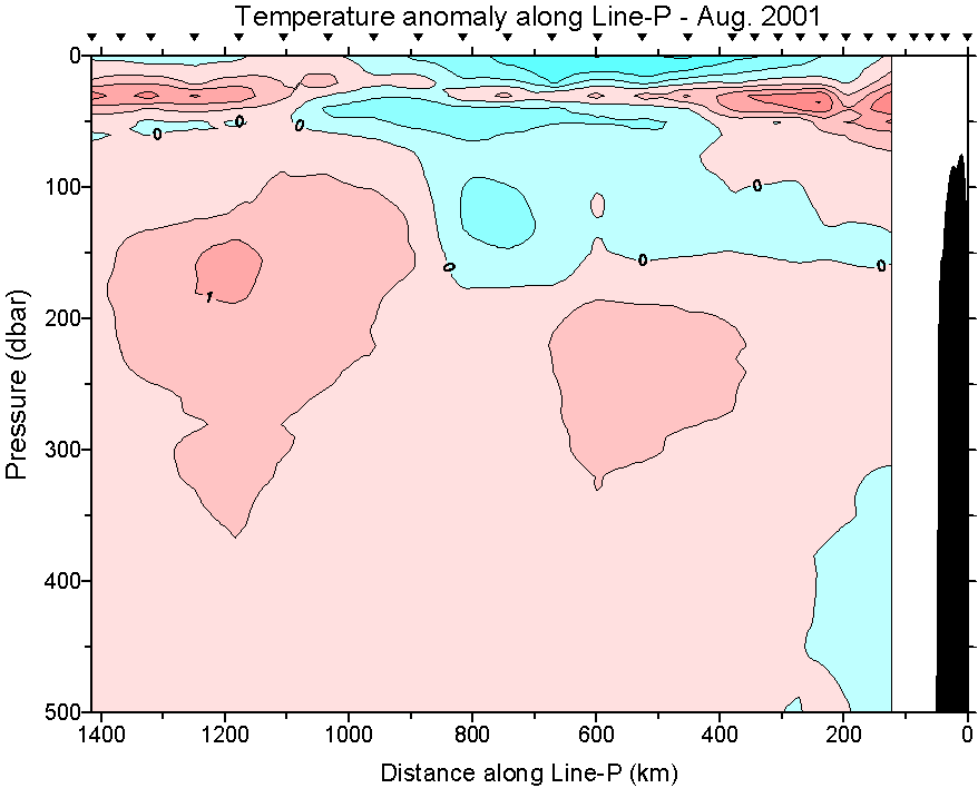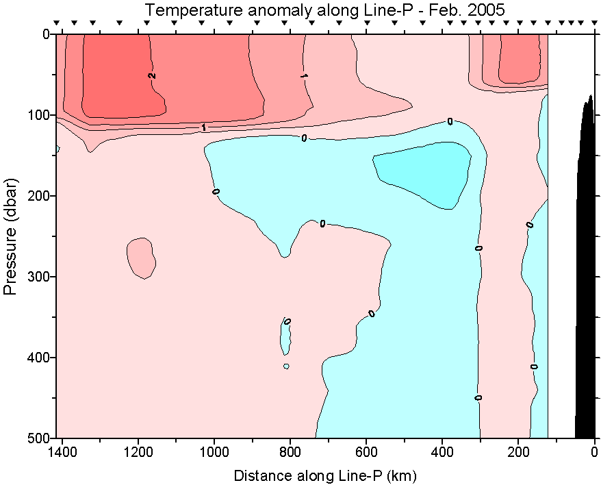 La ligne océanique P est une série d'observations du golfe de l'Alaska depuis 1956 jusqu'à aujourd'hui. Ces données sont utilisées ici en raison de la disponibilité des observations climatologiques fiables retrouvées le long de la ligne océanique P.