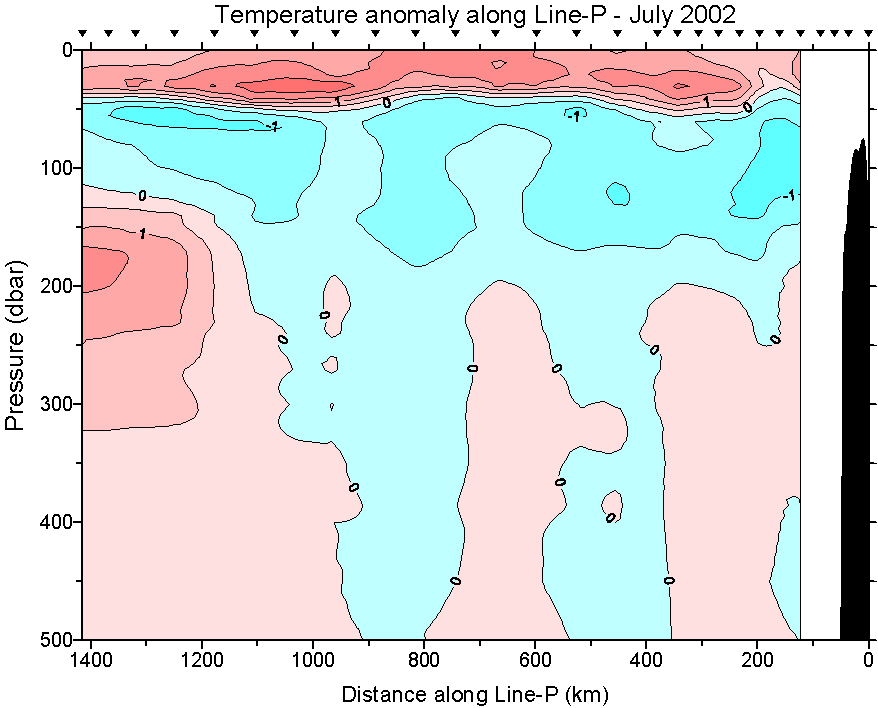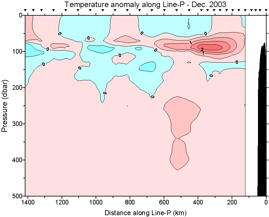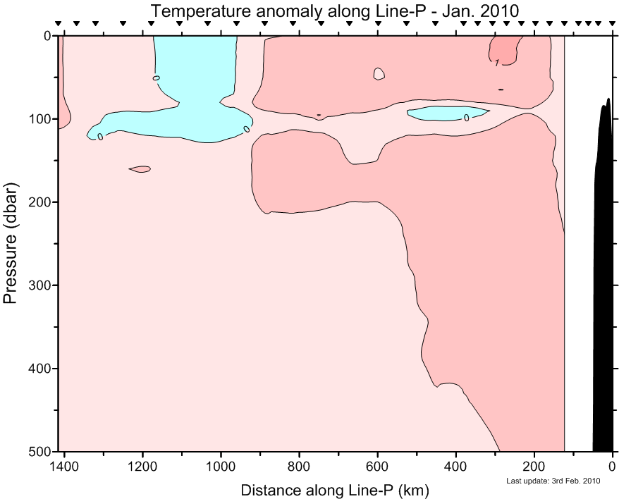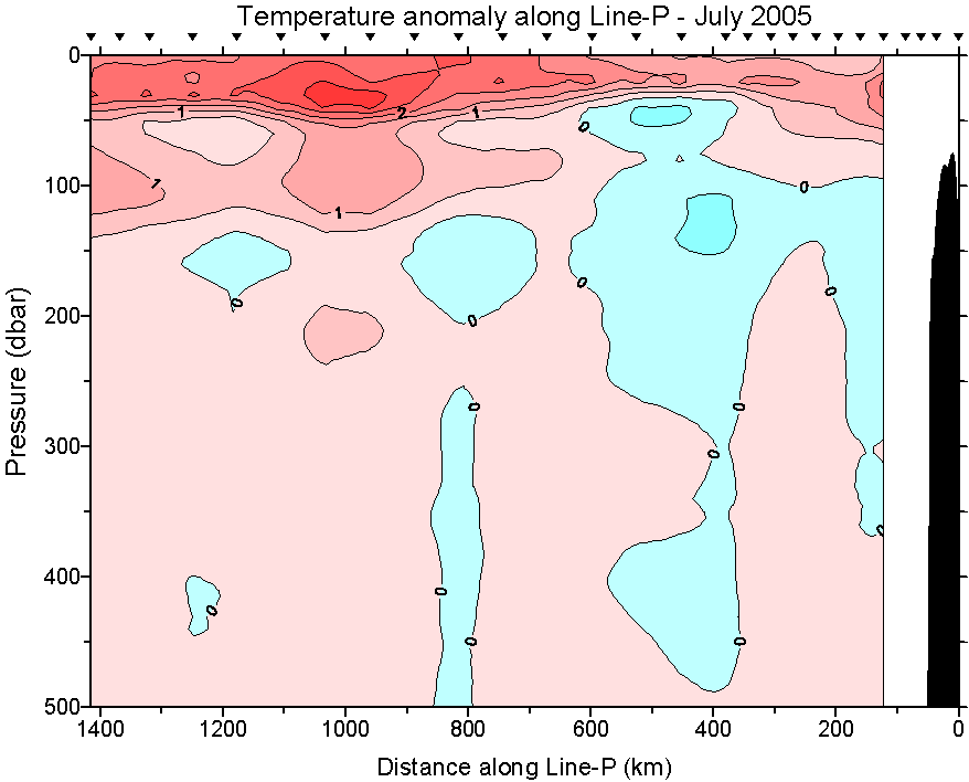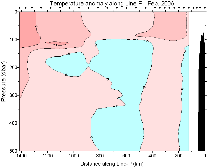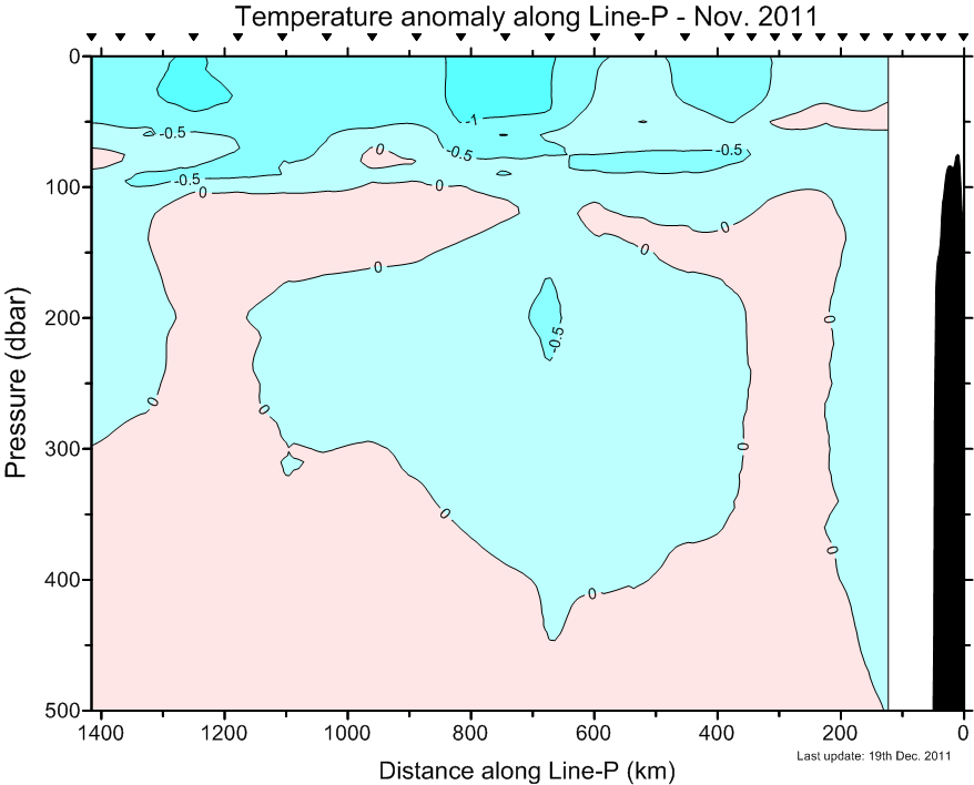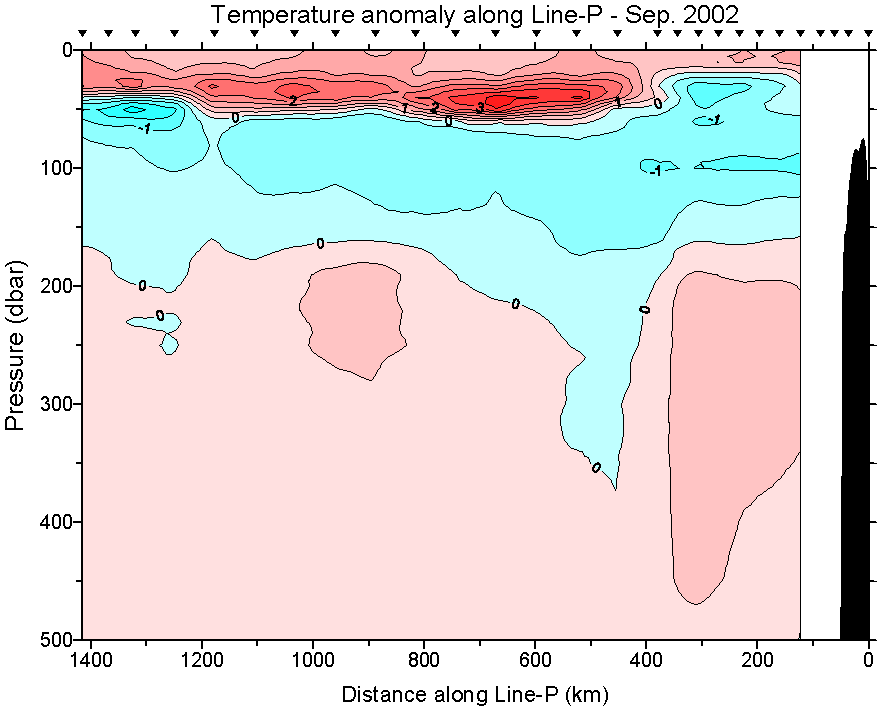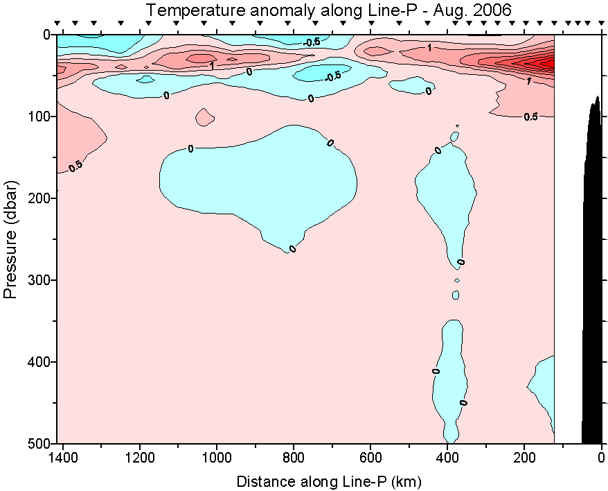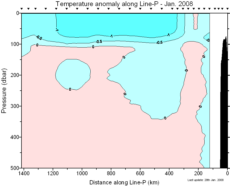 La ligne océanique P est une série d'observations du golfe de l'Alaska depuis 1956 jusqu'à aujourd'hui. Ces données sont utilisées ici en raison de la disponibilité des observations climatologiques fiables retrouvées le long de la ligne océanique P.