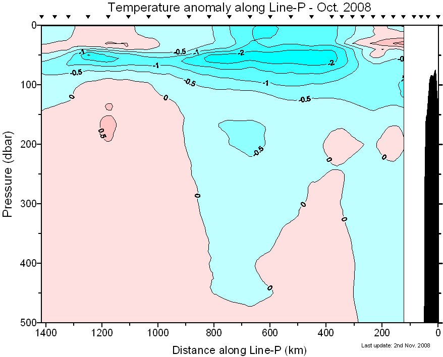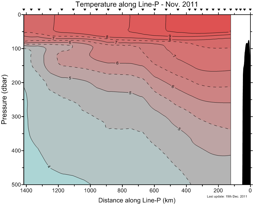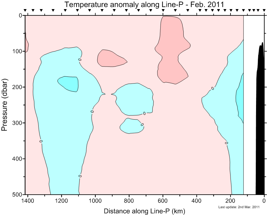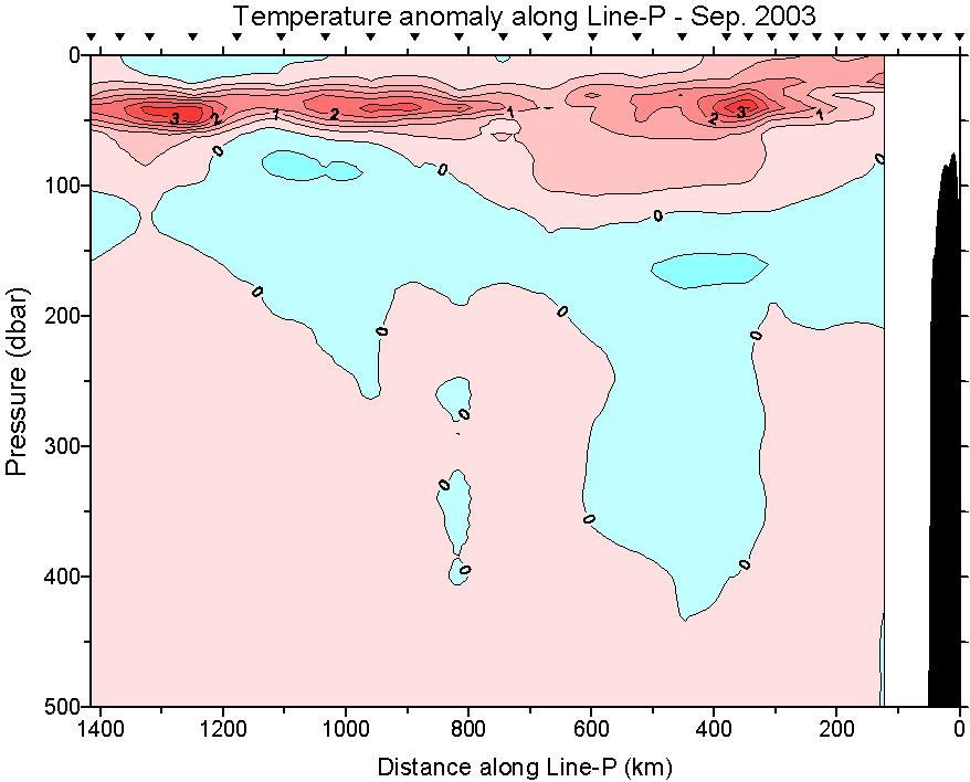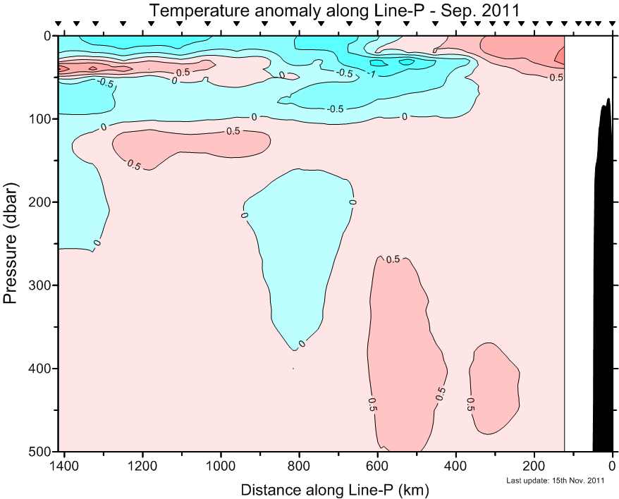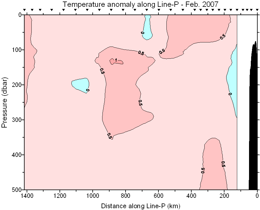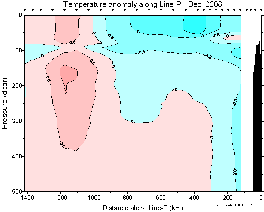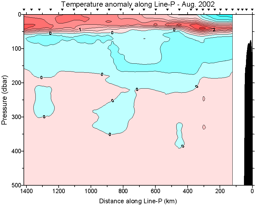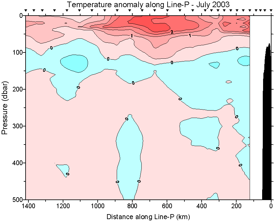 La ligne océanique P est une série d'observations du golfe de l'Alaska depuis 1956 jusqu'à aujourd'hui. Ces données sont utilisées ici en raison de la disponibilité des observations climatologiques fiables retrouvées le long de la ligne océanique P.