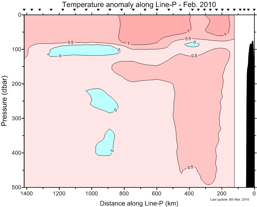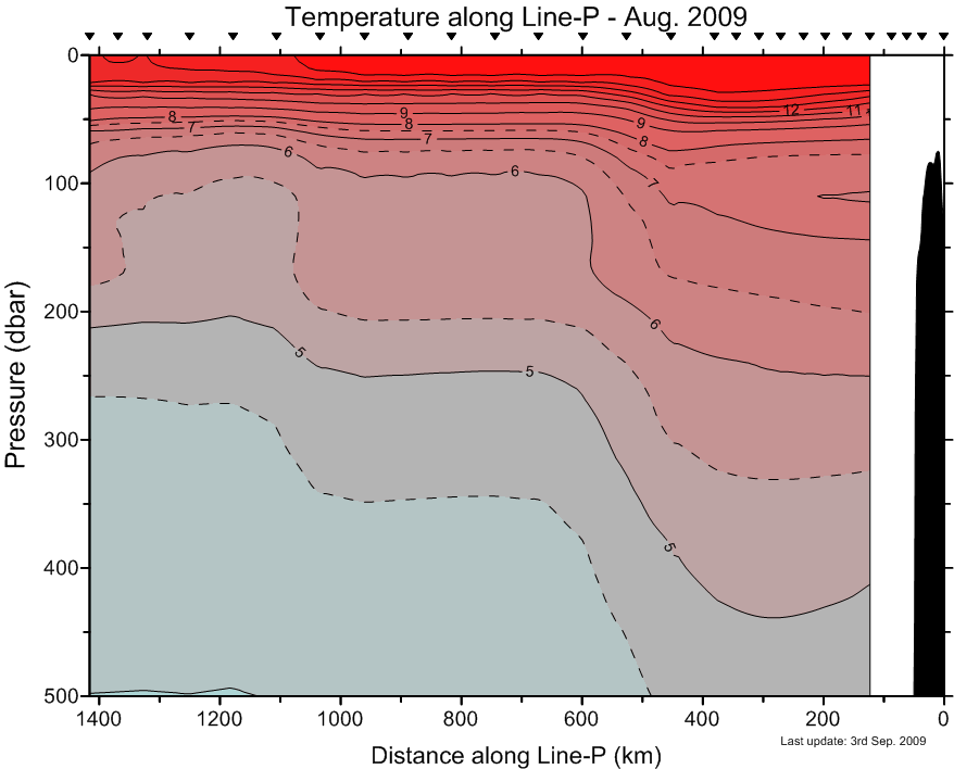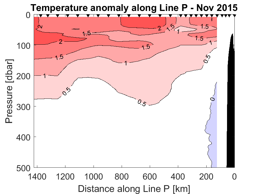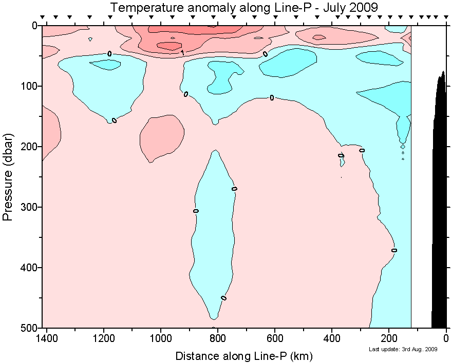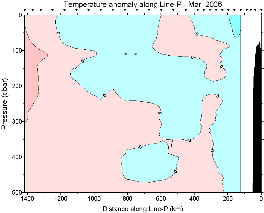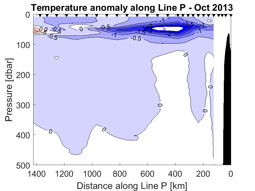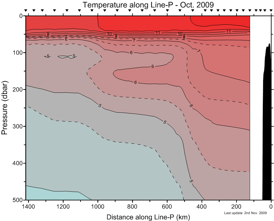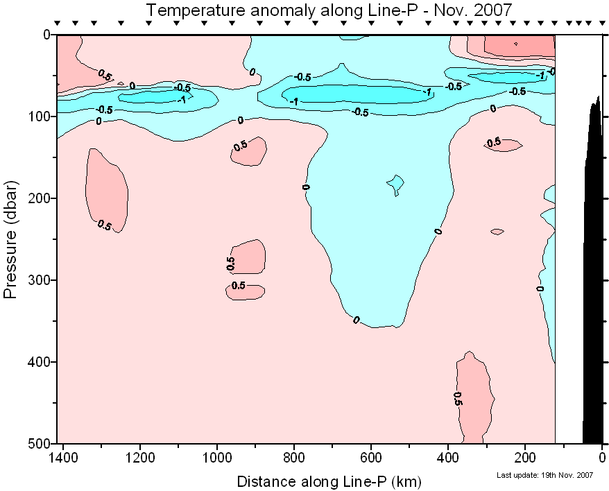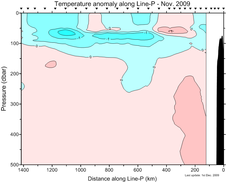 La ligne océanique P est une série d'observations du golfe de l'Alaska depuis 1956 jusqu'à aujourd'hui. Ces données sont utilisées ici en raison de la disponibilité des observations climatologiques fiables retrouvées le long de la ligne océanique P.