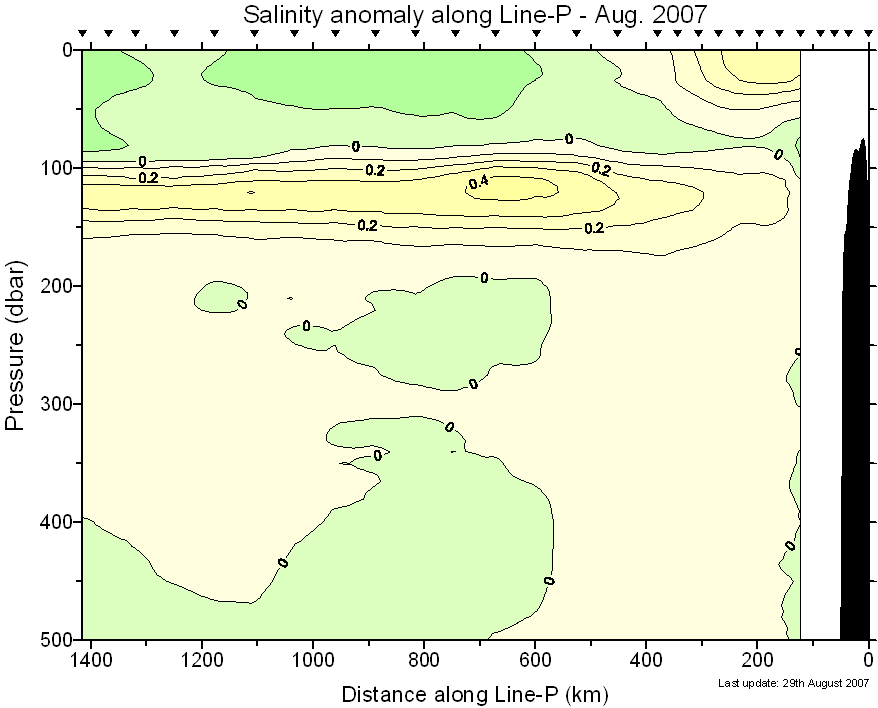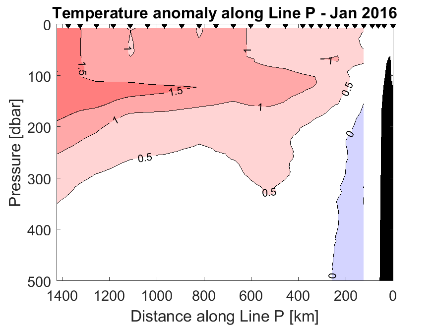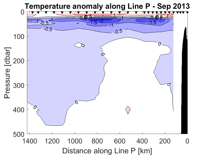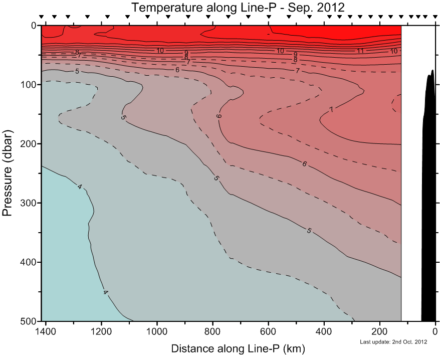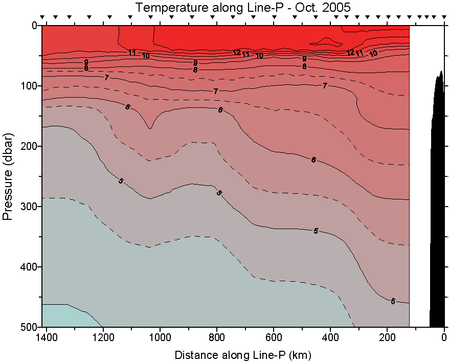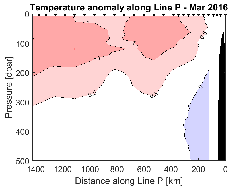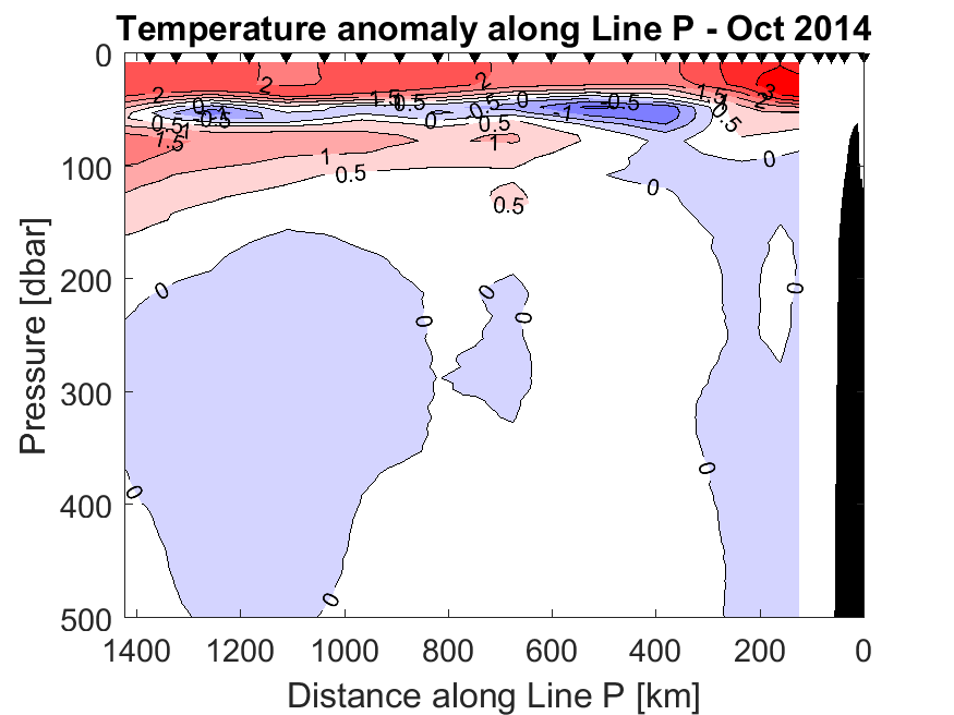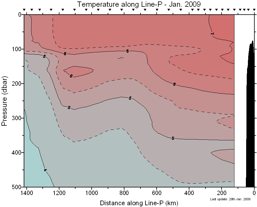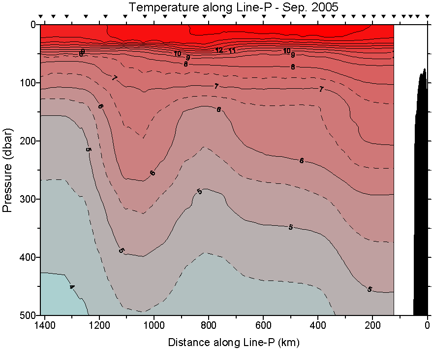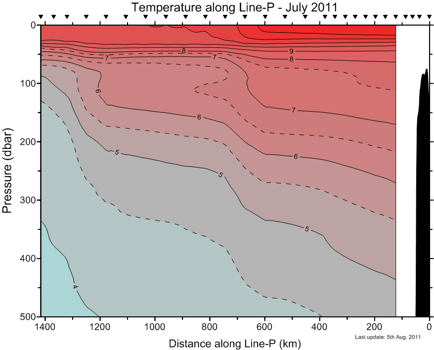 La ligne océanique P est une série d'observations du golfe de l'Alaska depuis 1956 jusqu'à aujourd'hui. Ces données sont utilisées ici en raison de la disponibilité des observations climatologiques fiables retrouvées le long de la ligne océanique P.