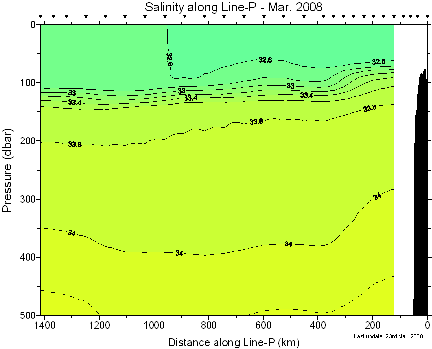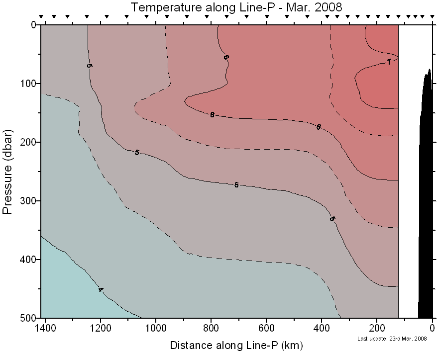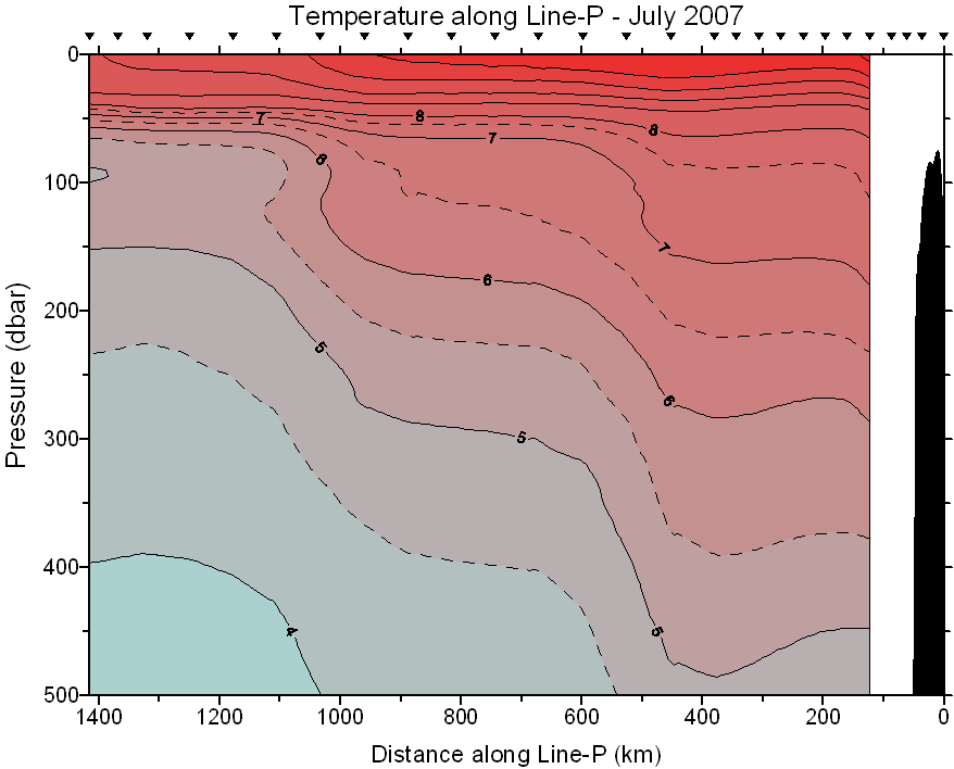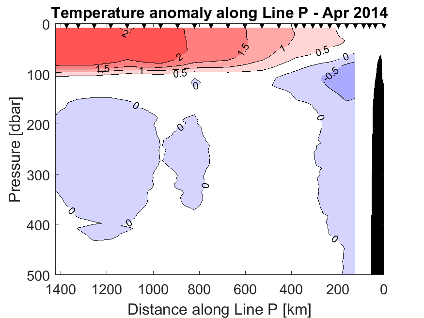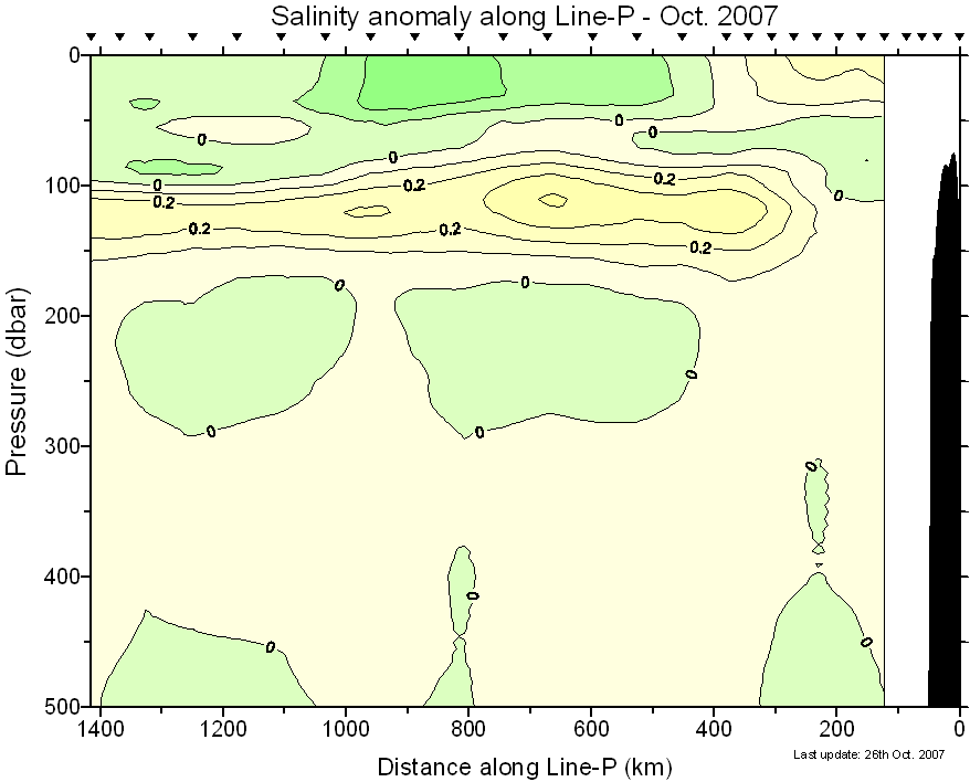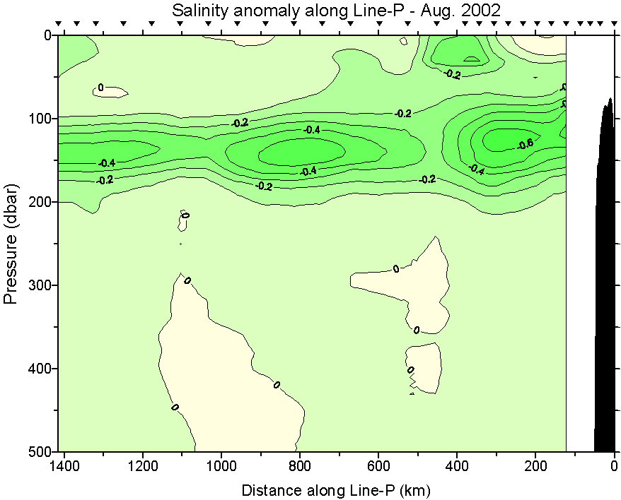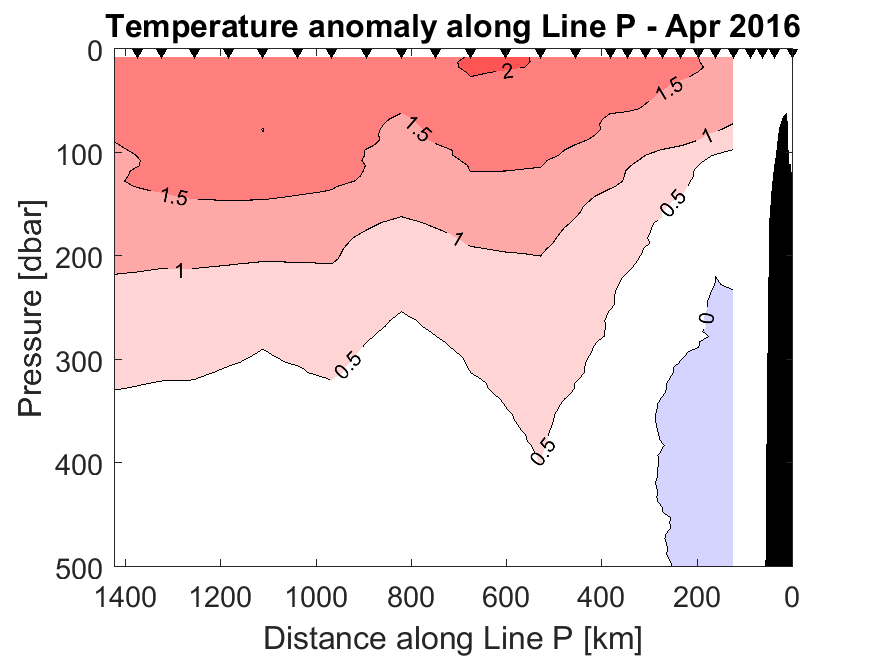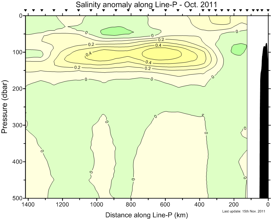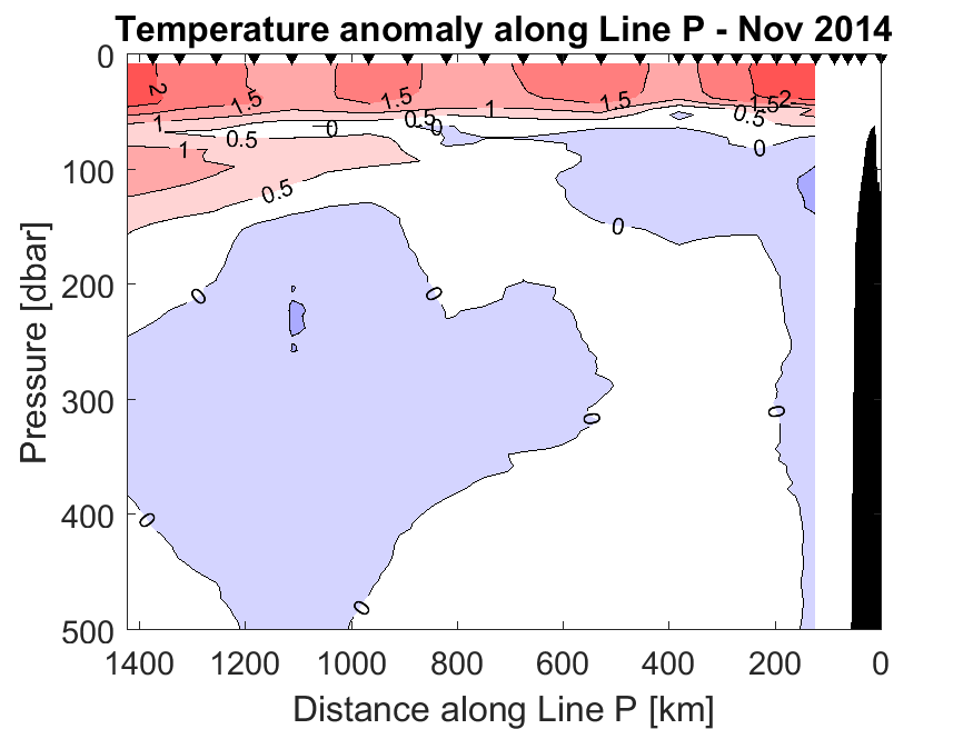 La ligne océanique P est une série d'observations du golfe de l'Alaska depuis 1956 jusqu'à aujourd'hui. Ces données sont utilisées ici en raison de la disponibilité des observations climatologiques fiables retrouvées le long de la ligne océanique P.