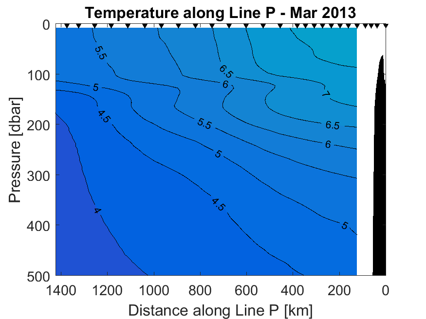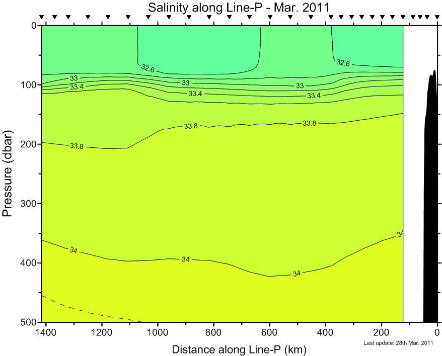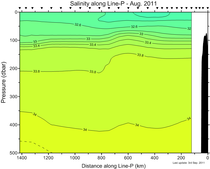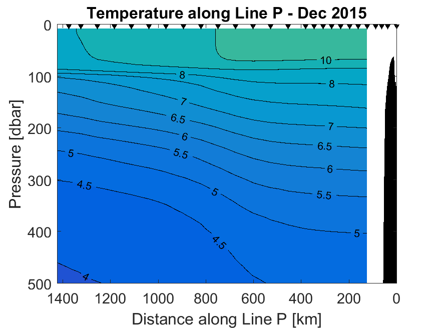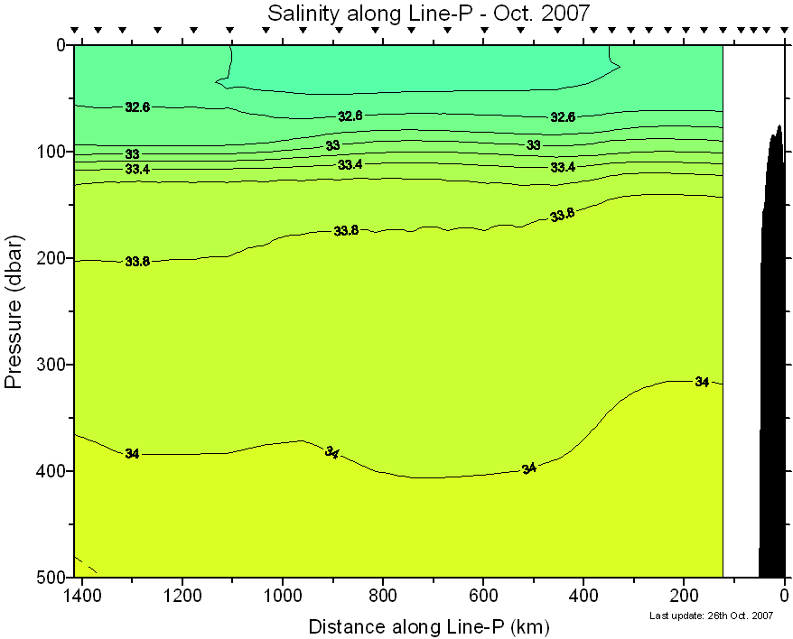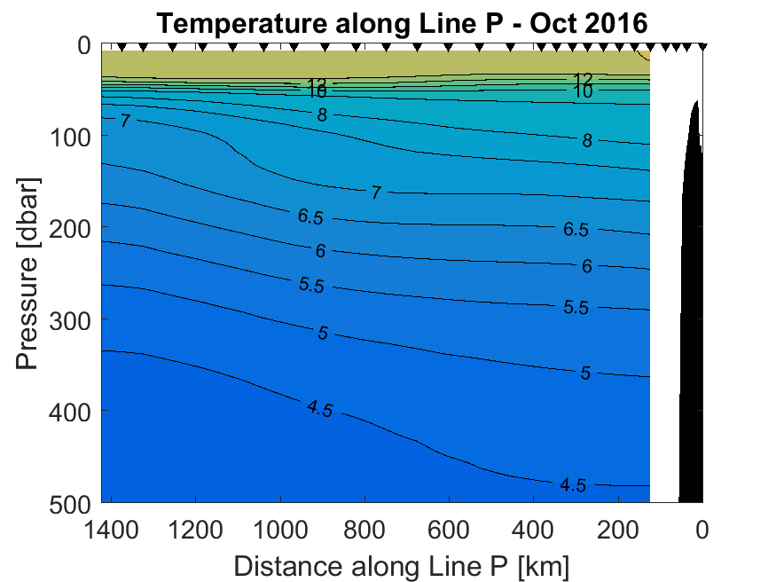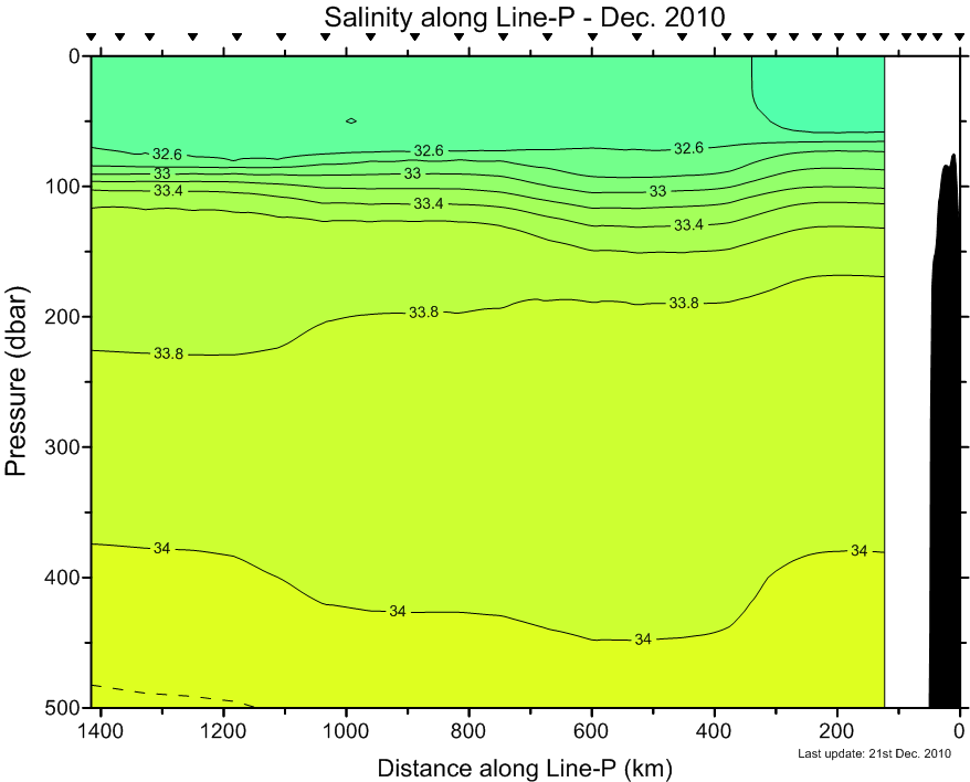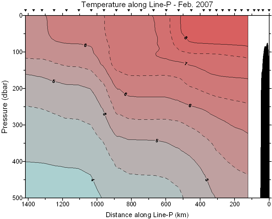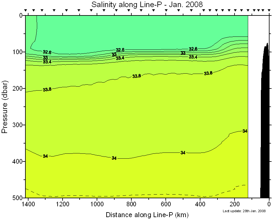 La ligne océanique P est une série d'observations du golfe de l'Alaska depuis 1956 jusqu'à aujourd'hui. Ces données sont utilisées ici en raison de la disponibilité des observations climatologiques fiables retrouvées le long de la ligne océanique P.