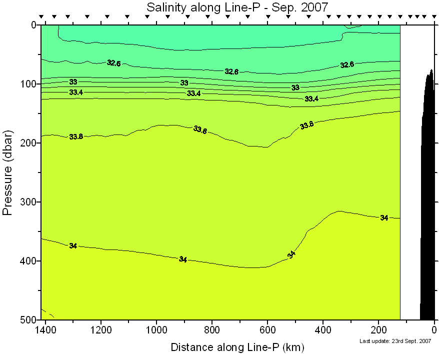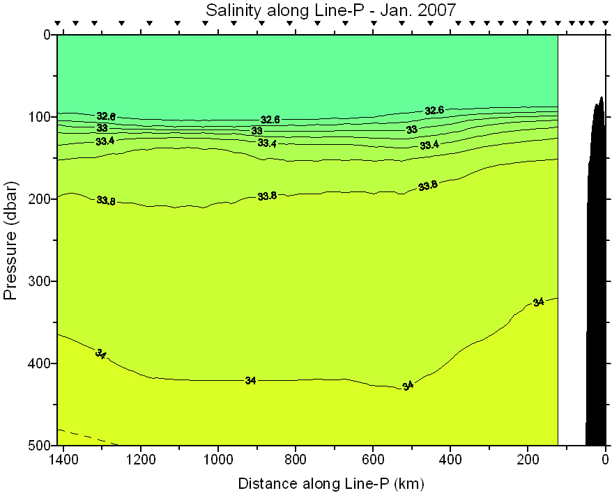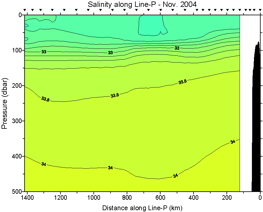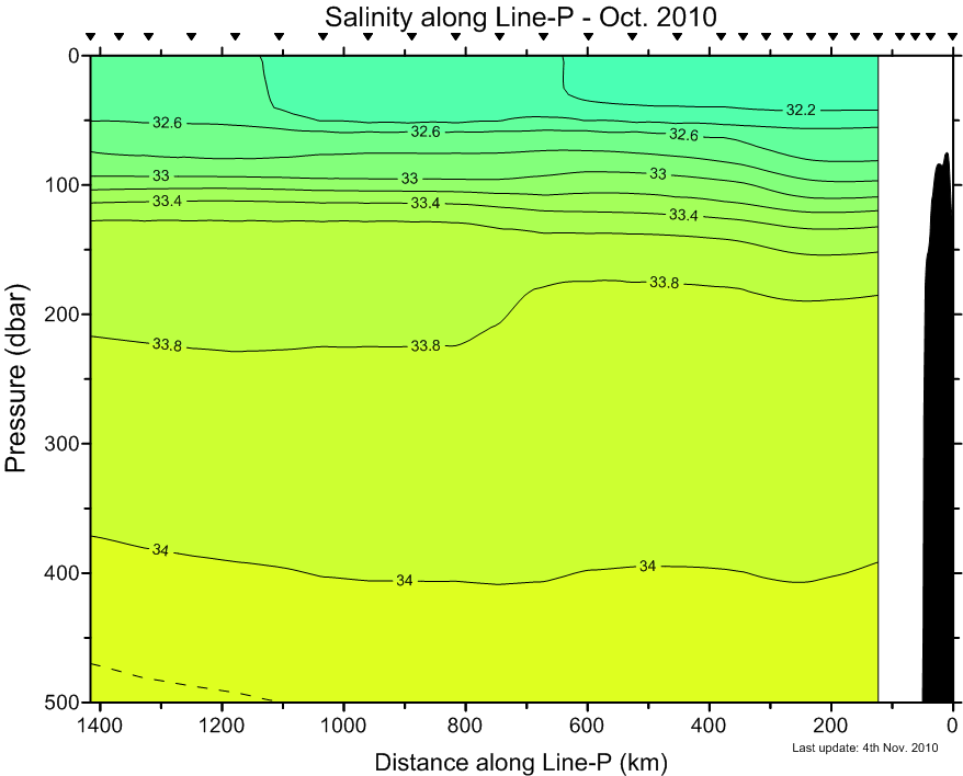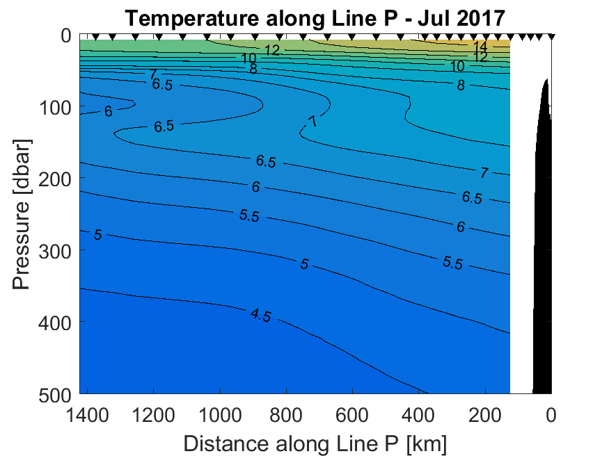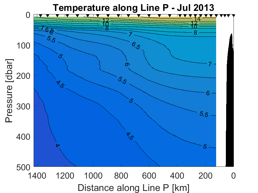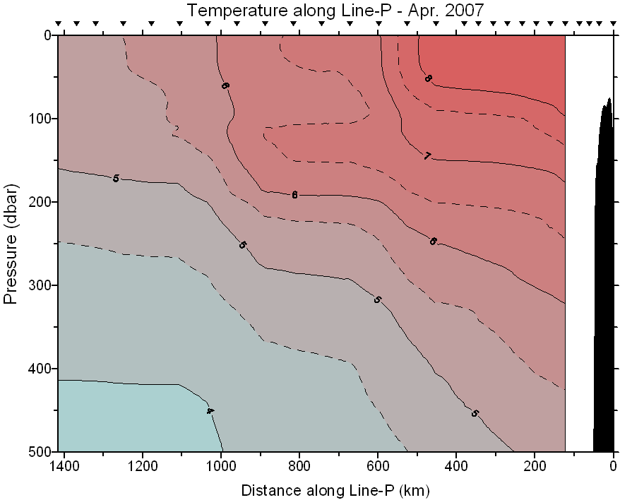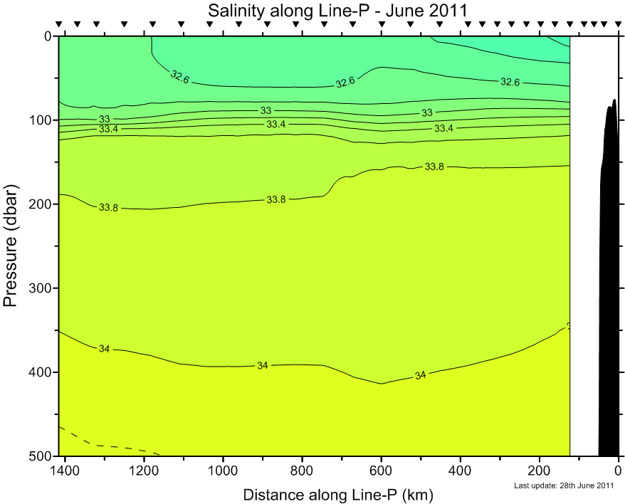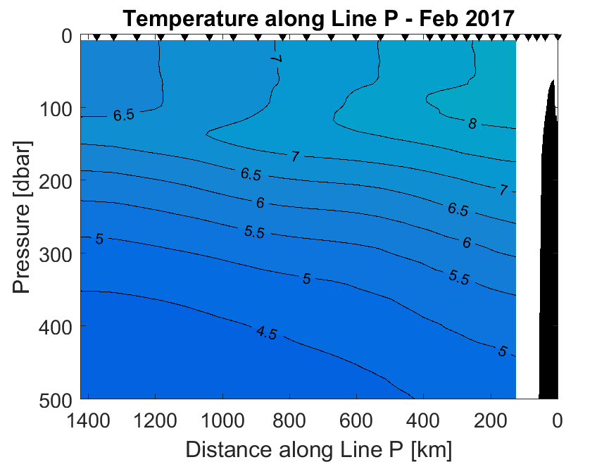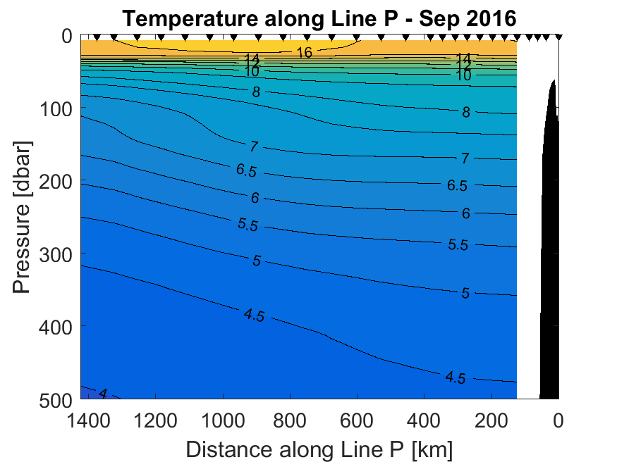 La ligne océanique P est une série d'observations du golfe de l'Alaska depuis 1956 jusqu'à aujourd'hui. Ces données sont utilisées ici en raison de la disponibilité des observations climatologiques fiables retrouvées le long de la ligne océanique P.