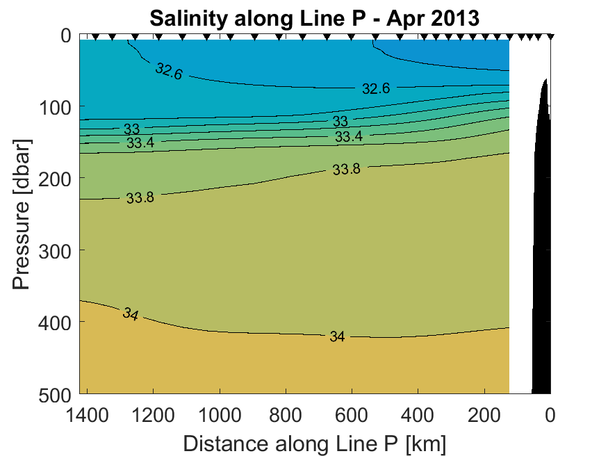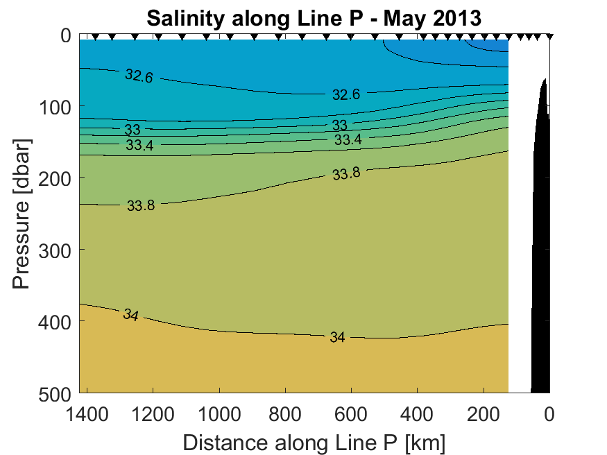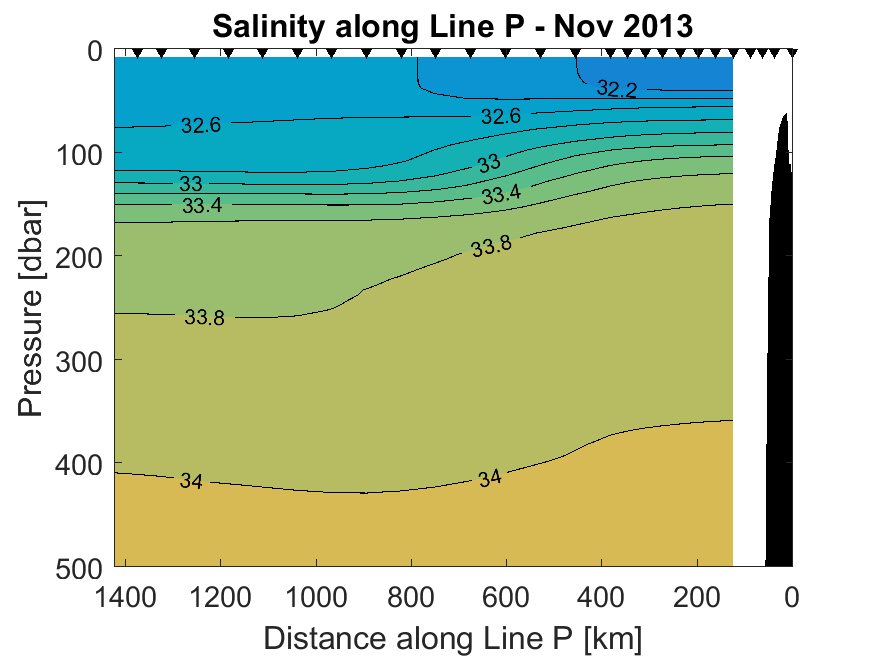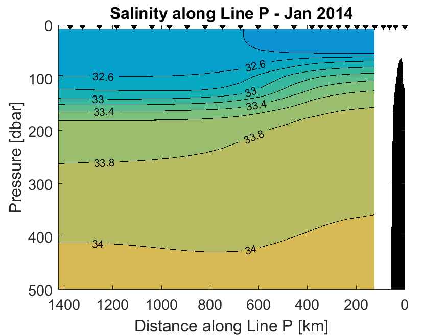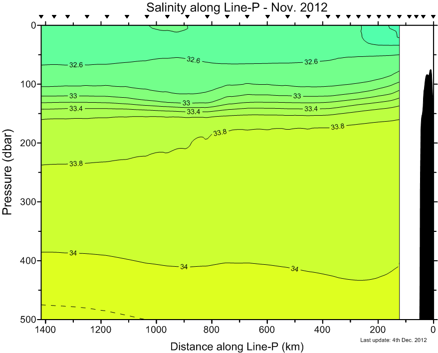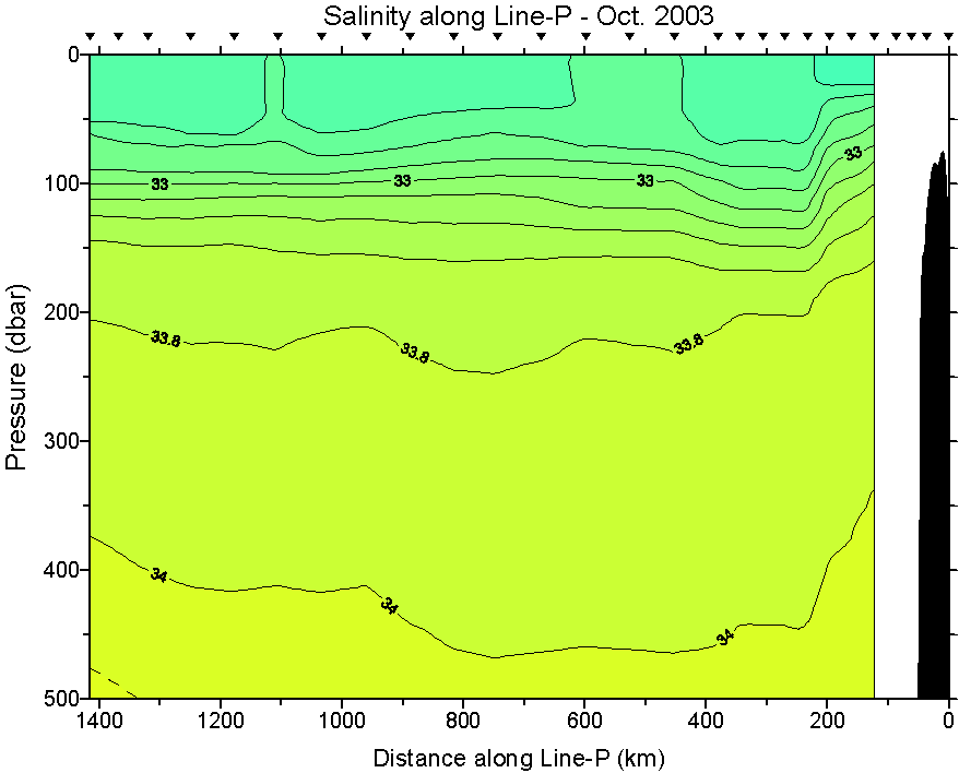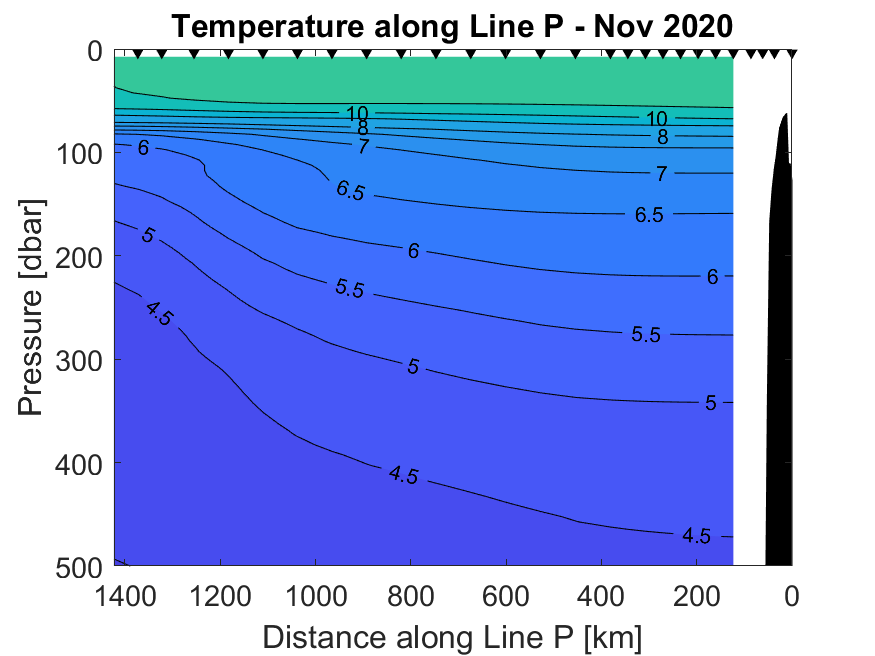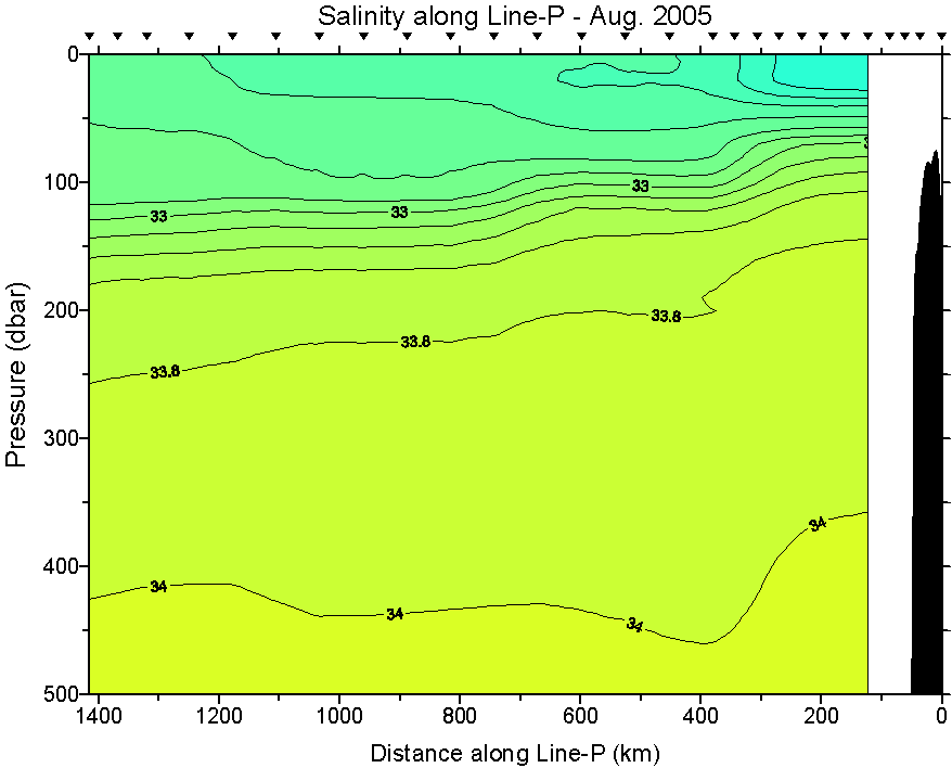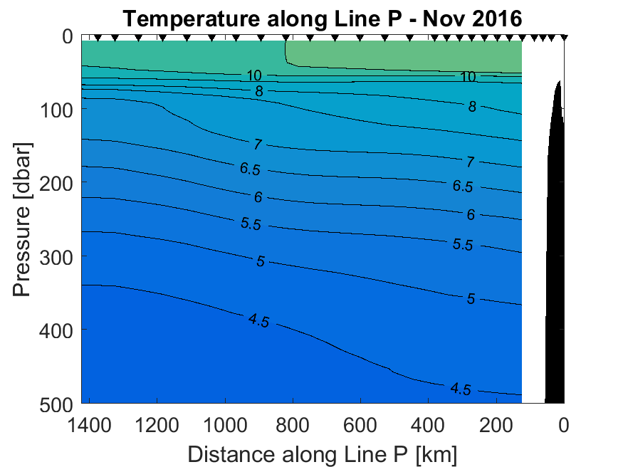 La ligne océanique P est une série d'observations du golfe de l'Alaska depuis 1956 jusqu'à aujourd'hui. Ces données sont utilisées ici en raison de la disponibilité des observations climatologiques fiables retrouvées le long de la ligne océanique P.