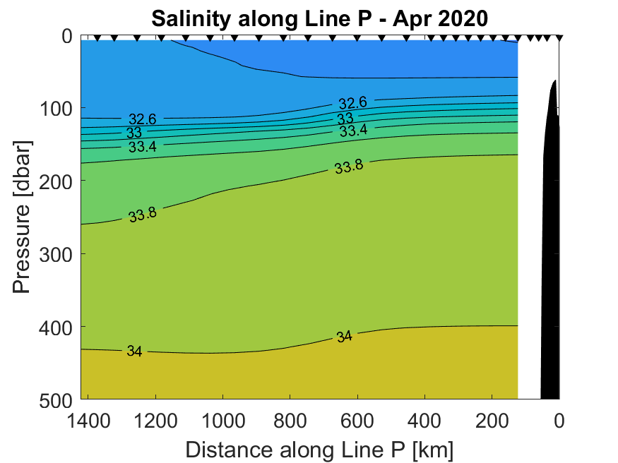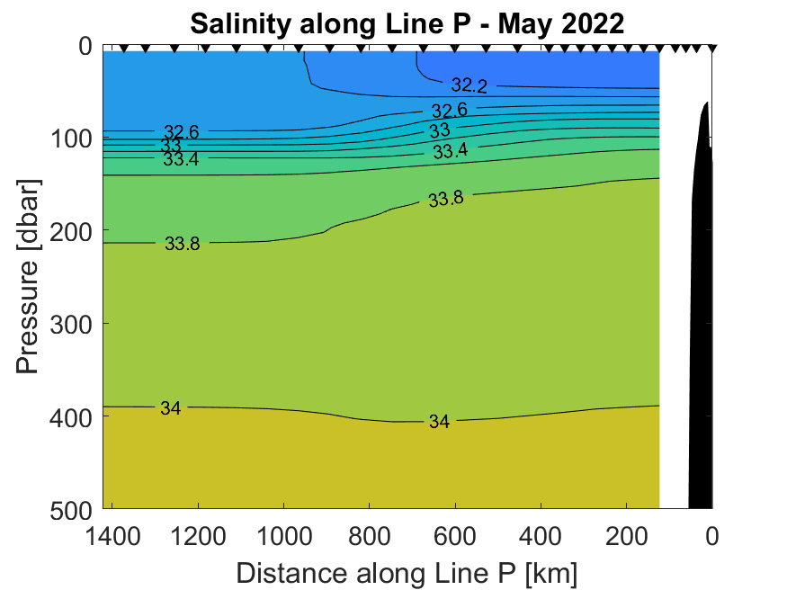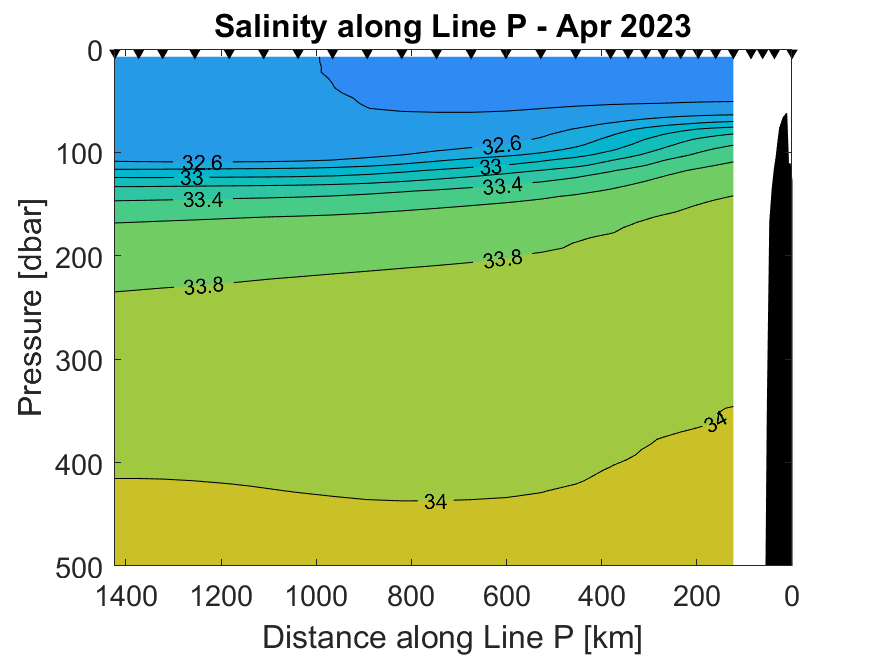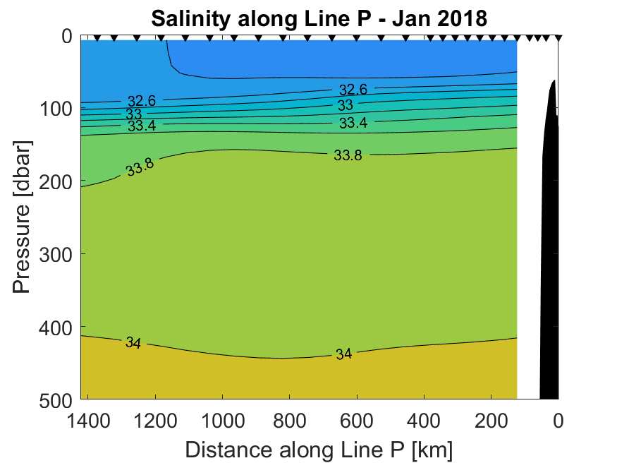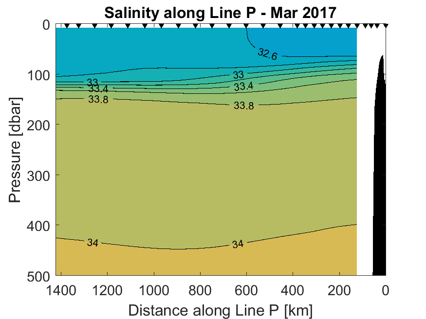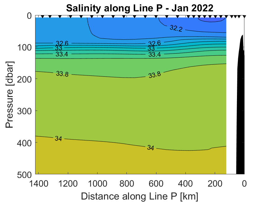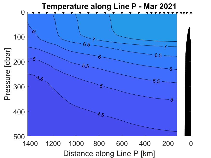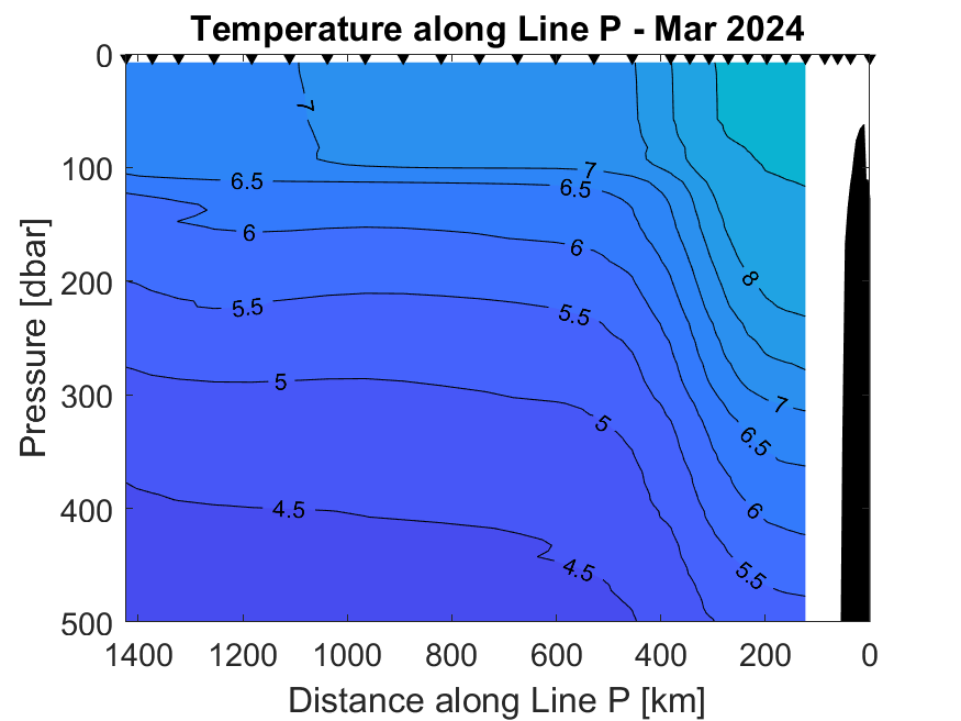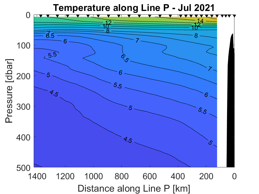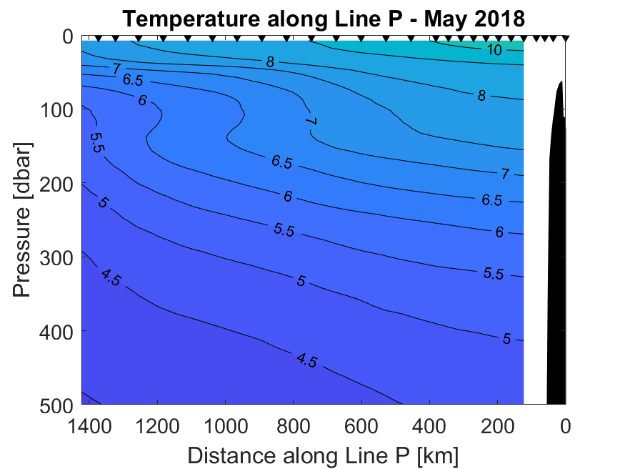 Pour le mois et l'année en cours, les sections sont calculées en utilisant les données disponibles à ce jour. Ces sections sont susceptibles d'être modifiées. Les versions définitives seront publiées lorsque toutes les données seront disponibles. Les anomalies sont calculées par rapport à la climatologie de la ligne P.